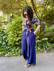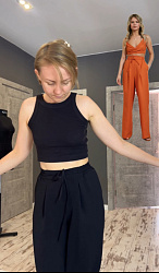 Брюки сшила в комплекте с топом uma. Шила из вареного хлопка. Очень комфортные! Классно, что можно регулировать объем завязками.