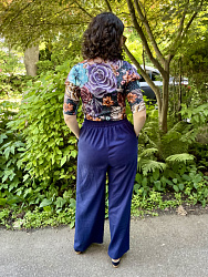 Это были мои первые самостоятельно сшитые брюки! Все получилось отлично, описание пошива замечательное, все было понятно! Большое спасибо! Единственное, я не учла приличную прибавку на свободу облегания и они получились слишком свободные, я бы хотела их видеть не такими широкими. Но это уже мои личные предпочтения, которые я с опытом смогу учитывать при покупке выкроек и выборе размера.