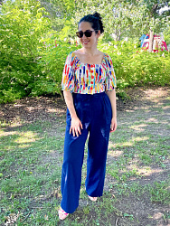 Прекрасная выкройка! Первую пару сшила из смесового льна: 55% лен, 43% вискоза, 2% спандекс. Взяла размер на бедра 106 см, мой об сейчас 108, ничего не меняла и сели отлично, так как есть достаточные прибавки. Прекрасная инструкция с четкими иллюстрациями. Шьются очень просто и быстро, и как только я их померила, сразу захотелось пошить такие же во всех цветах!