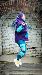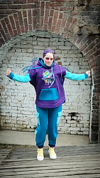 Выкройка шикарная, только низ сделала без манжетов. С худи Бани получился классный теплый костюм. Ткань - футер 3-х нитка с начесом. Доче очень нравится.