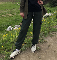 Брюки шила еще год назад. Выкройка очень удачная, сели без корректировок. Только на мне они немного шире, чем на фото, но это как раз то, что было нужно. Шила из трикотажной замши. Вместо липучек поставила кнопки.