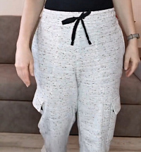 Выкройка мне понравилась. Почти ничего не меняла. Изменения: форма карманов в шве, манжета из кашкорсе. Шила из футера 2х нитки петля. Мой рост - 160, об - 106, от - 80. Размер выбрала 50, рост 155-160. Длину брючек можно было бы сделать подлиньше, но и так нормально.