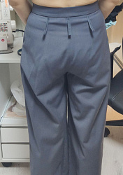 Спасибо за отзыв. Ваше фото очень показательно: брюки сильно малы по талии. Видно, как пояс пережимает кожу, по бокам идёт напряжение и образуется горизонтальная складка под поясом. Это типичный признак несоответствия объёма талии в изделии и фактического обхвата. В такой ситуации «углублять седло» не нужно и не помогает – дефект возникает не от формы выкройки, а от того, что изделие не садится по талии. При корректной посадки в области талии лишних заломов сзади не будет. Ваш обхват талии точно больше, чем заложено в выбранном размере, и именно это причина проблемы, а не сама выкройка.