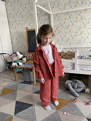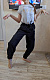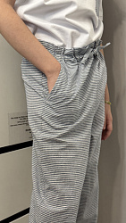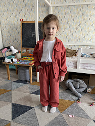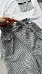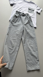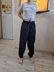 Шила дочке изо льна под джинс с накатом, достаточно плотного, но мягкого. Видимо из-за ткани получились брюки не очень пластичные, не совсем похожие на модель, но вполне комфортные. Хотя мне показалось маловато свободы, но, возможно, из-за ткани все-таки. Пояс заменила на резинку широкую.