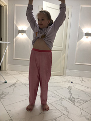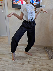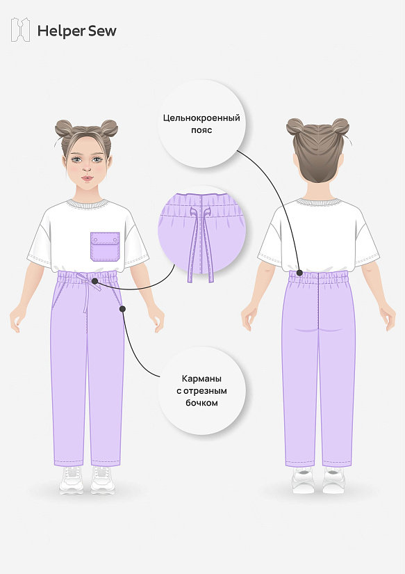 Сначала на рост 146 см я приобрела выкройку 146-84 - они оказались просто огромными. Тогда я купила выкройку на рост 140-78, добавила длины по росту и прибавила длину на резинку, они сели хорошо. Рост дочки 145 см.