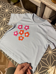 Спасибо за тёплый отзыв! Здорово, что добавили свой творческий штрих — цветы наверняка сделали футболку особенной! 😊
