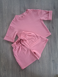 Отличная футболка, дочке комплект из муслина с брюками, с шортами из кулирки.