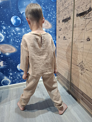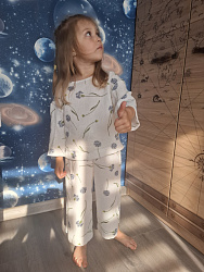 Отличный костюм из муслина. На рост 98, взяла размер 98. Хорошо. Все лето отходили.