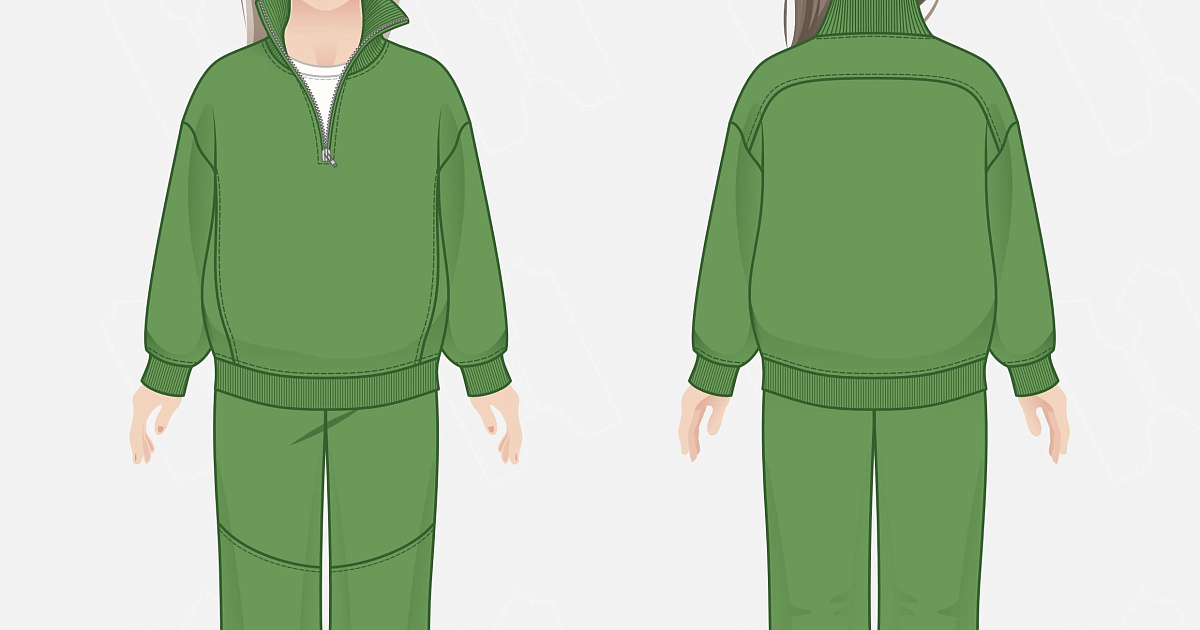 Для пошива подойдут различные виды трикотажных полотен средней плотности: флис, футер 3-х ниточный петельный или с начесом. Для обработки пояса, манжет и стойки подойдёт трикотаж кашкорсе.