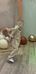 Сшила комбинезон из трикотажного велюра. Ребенок не крупный, и ему бы размер 92, но у выкройки самый маленький размер - 98. В целом сидит неплохо, и на вырост получилось. Выкройкой довольна. Давно хотела сыну такой комбинезон.