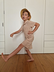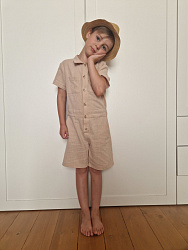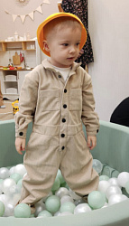 Отличный комбинезон! Сшила из искусственного льна. Укоротила штанины и рукава. 116 р идеально подошел.