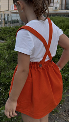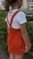Удобная юбка, хорошая длина, но к лету ребенок вытянулся и юбка стала короче, можно носить без лямок, но с ними смотрится интересней.