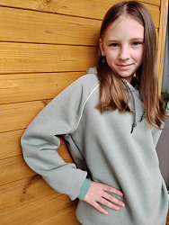 Модель ростом 125, брала выкройку худи на 128. Из изменений - добавила карман. Очень понятная инструкция.