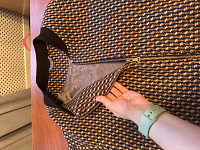 Отличная выкройка! Делала отстройка на рукавах в цвет подклада. Рукава сделала из плащевки, а основу - из бархата. Корректировок по выкройке больших не было, только чуть подлиннее рукав делала.