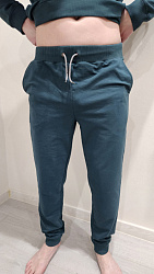 Хорошая выкройка, как раз нужны были зауженные брюки. Сшила из футера 3-нитки, отлично сели, но брат говорит, что в объеме по бедрам можно было и поменьше сделать. Манжеты и пояс делала из основной ткани.