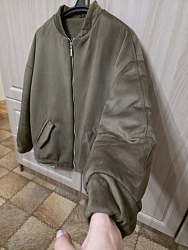 Мягкая искусственная Замша,поэтому дублировала дублирином 72гр, слайтекс 150 и подкладочная. Манжеты и воротник хотелось в цвет, поэтому сделала из того же материала, в манжетах резинка. В следующий раз скорее всего немного уберу длину, так как нижний манжет идёт по самой широкой части бедер, и не буду делать клапана на карманах, немного визуально утяжеляют нижнюю часть. Бомбер получился удобный и теплый, ношу при +3 и отлично.