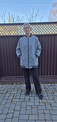 Очень хорошая выкройка! Возможно, сошью еще один из более дорогой ткани. Этот шила из дюспо. Посадка отличная, не слишком объемная, но я брала на 1 размер больше моего.