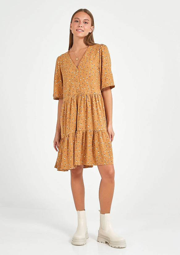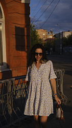 Очень понятная инструкция. Это мое первое платье, и шила я его из штапеля, но, несмотря на это, у меня получилось. Шила два дня с перерывами. И обтачка, и рукав вшить - все было в первый раз, но я справилась. На рост 170 добавила по 3 см на каждую оборку, потому что планировала носить в офис. Получилось чуть ниже колена. Красивое платье ношу с поясом.