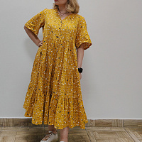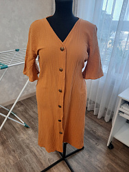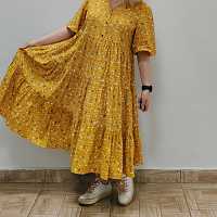 Платье сшила из муслина. Пару часов на пошив и платье готово. Легкое, воздушное. Брала выкройку на размер меньше, так как модель платья достаточно объемная.