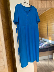 Платье очень понравилось! На ОГ 100 и рост 168 взяла размер 100/170. Не сказать, что сильно свободно в груди, в самый раз. Шила изо льна с вискозой. В наличии было два метра, так что пришлось корректировать. Юбку взяла просто - два прямоугольника на всю ширину и оставшуюся длину. Сборка получилась очень небольшая. Также вшила завязки в боковые швы, чтобы немного приталить. Спасибо за выкройку!