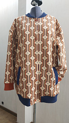 Шила из футера трехнитки. Брала свой размер по ОГ. Из корректировок: укоротила на 23 см, не делала карманы, на подкладке из кулирки.