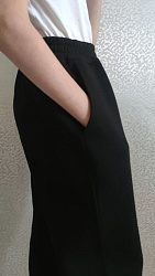 Приобрела самый маленький размер на параметры 11-летней худенькой девочки. Очень понравился объём нам обеим )) Брючки просто и быстро сшила, проигнорировала шнур на поясе и эластичную тесьму по низу, получились почти классика ) Благодарю за выкройку!!!