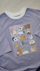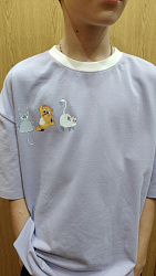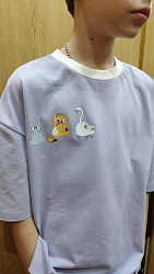 Сшила футболку по этой выкройке мальчику 12 лет. Ему нравится оверсайз и эта очень понравилась. Наклеили ещё термотрансферы котов 🐱