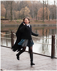 Не правильно подобрала размер, т. к. выкройка рассчитана на подростков, у них своя размерная сетка. Мои параметры: ОТ 74, ОБ 108. Я взяла выкройку по размерной сетке ОБ 103, а надо было ОБ 99. В итоге очень большая в талии, сползает в низ, а хочется, чтоб была повыше. По длине убирала 5 см, но можно еще, если ножки позволяют. Сначала запуталась в складках и не правильно сметала, хорошо, не успела заутюжить, в итоге переделывала. Но юбка классная. Может, решусь еще раз сшить, но уже учту свои недочеты. Для пошива взяла костюмную вискозу с эластаном, она довольно вислая, на такую юбку хочется более сухую ткань.