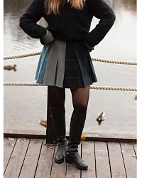 Взяла серую шерсть, так же у меня осталась голубая шерсть в клетку и темная клеточка от предыдущей юбки.