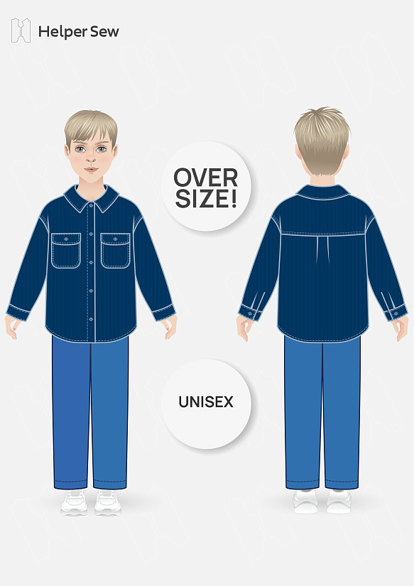 Выкройку нужно брать на два размера больше для детей по старше, чтобы был нормальный овер.