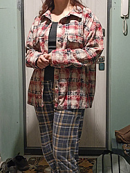 Рубашка отличная, шила сыну из плотного флиса, носит не снимая. На базе этого лекала сшила и себе рубашку, на меня получился оверсайс.