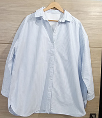 На мои же параметры Ог 101 , рост 168 вышла отличная рубашка! В размер! Шила из вареного хлопка, ткань для модели отличная. Ничего в выкройке не меняла, кроме длины, укоротила на 9 см. Рекомендую это сделать, рубашка становится как-то собраннее, больше похожа на рубашку, а не на халат.