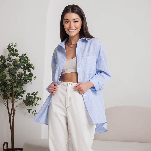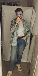 Сшила уже штук 10 рубашек по этой выкройке! Самая любимая модель, идеальный легкий оверсайз, длина и посадка - все как мне нравится. Буду шить по ней еще 100%. В рубашке в полоску моделировала рукав цельнокроеный. Остальное без изменений. В голубой добавила накладной карман внизу и укоротила рукава. Пишут, что рукава короткие по выкройке. Мне нормально))