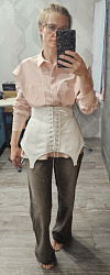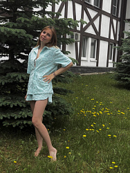 Комплект с шортами Lora, получился хороший отпускной вариант. Изменения не вносила. На мой вкус, рубашка идеального объема (не гипер овер).