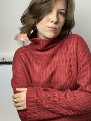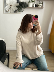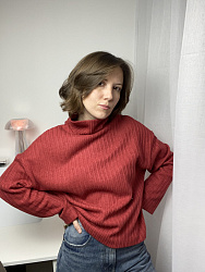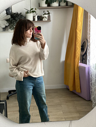 Очень удачная выкройка свитера, главное выбрать правильный трикотаж. У меня был плотный вязаный и он отлично подошел. Шьется на раз-два, обработка низа без распошивальной машины. С удовольствием повторю.