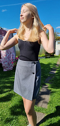 Выкройка хорошая. Удобно, что можно переставить пуговицы и подогнать под свою фигуру. На бедра 98 взяла выкройку на 94, но корректировать не пришлось. Юбка расклешенная.