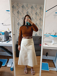 Выкройка отличная, как всегда, все идеально по параметрам. Немного изменила, шила из денима, скроила детали цельными и удлинила ее, так как при раскрое не проверила длину и на мой рост 170 была коротковата для меня. Также решила разрез впереди добавить. В результате получилось ещё лучше! Этим летом была самая любимая юбка.