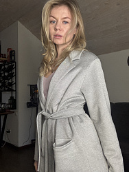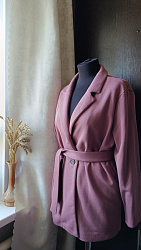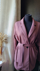 Хороший жакет. Из изменений: убрала спущенный рукав и сзади сделала вытачки, чтоб убрать складки, образующиеся при завязывании пояса.