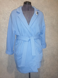 Сшила из трикотажа Пике. Очень понятно все описано. Шила в удовольствие) Получился теплый жакет на осень. Вносила коррективы: сделала вместо накладных карманов прорезные, так мне больше нравится. Сделала петлю и пришила пуговицу. На параметры 84:65:96 подошел размер 42. Немного убрала в области плеч. Велико в области плеч оказалось, но я быстро и легко это скорректировала.