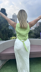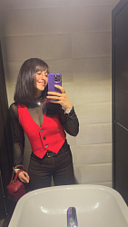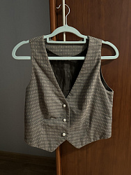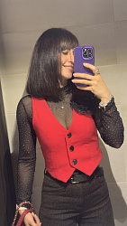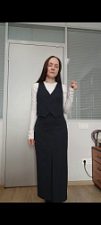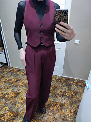 Жилет очень понравился, сшила костюмом с брюками Porte. Тк жилет укороченный, это визуально удлиняет ноги в комплекте с брюками-палаццо.