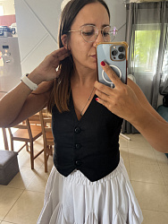 Хорошая базовая жилеточка! Выкройка супер, описание пошива, как всегда, понятное даже для новичка! Очень радует то, что ваше бюро использует графические изображения, а не фото, для поэтапного шитья, так очень понятны сложные швы. Сшила уже из двух материалов данную модель, из костюмной ткани (на фото, жду доставку пуговичек) и изо льна. Сложностей не возникло! Выкройкой довольна!