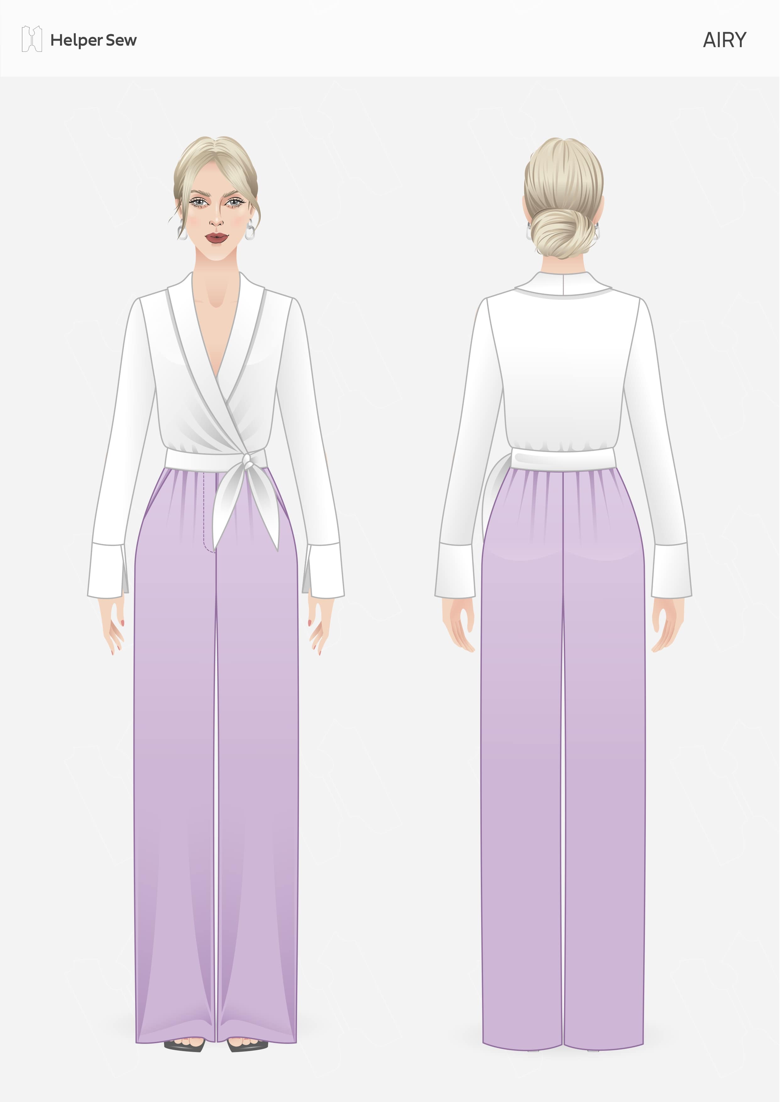 Очень красивая модель. Я прям в ней чувствую себя на 100%. Инструкция как всегда понятная. Ничего не меняла. Размер сел идеально. Взяла тонкую, немного стрейч костюмную ткань. Рукава блузки - отдельная любовь, можно и отогнуть.