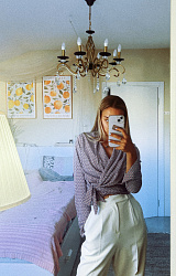 Прекрасная блузка. Можно составить разные образы. И вечерний, и деловой. Пришлось немного "повозиться", но итог нравится. Дочь носит с удовольствием! Спасибо за выкройку!