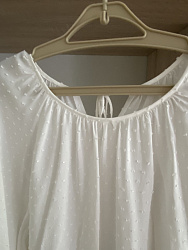 Шила блузку для дочери. Ткань - хлопковый батист с мушками, полупрозрачный и пластичный, мнется несильно.