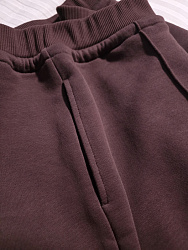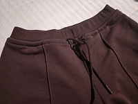 Отличная выкройка, точно повторю еще. Шила из футера 3-х нитка диагональ петля и кашкорсе, низ обработан на оверлоке и проложена строчка двойной иглой. Больше всего боялась за ровность при отстрочке стрелок, потому что имеющаяся лапка с ограничителем не подошла для этой цели (машинка бытовая). Но получилось все идеально. Длина не корректировалась. Шила без примерки и это было ошибкой. Размер был куплен по обхвату бедер, однако в талии этот размер на меня не сел, оказалось слишком свободно, пришлось отпарывать часть пояса сзади и по шву сидения уменьшить, как и пояс. В следующий раз учту это и, скорее всего, немного уменьшу ширину штанин. Изначально я так и хотела, но тут на любителя. Если делать из ткани с начесом, то и так будет хорошо. К сожалению, фото на мне не самое удачное, был сильный ветер.