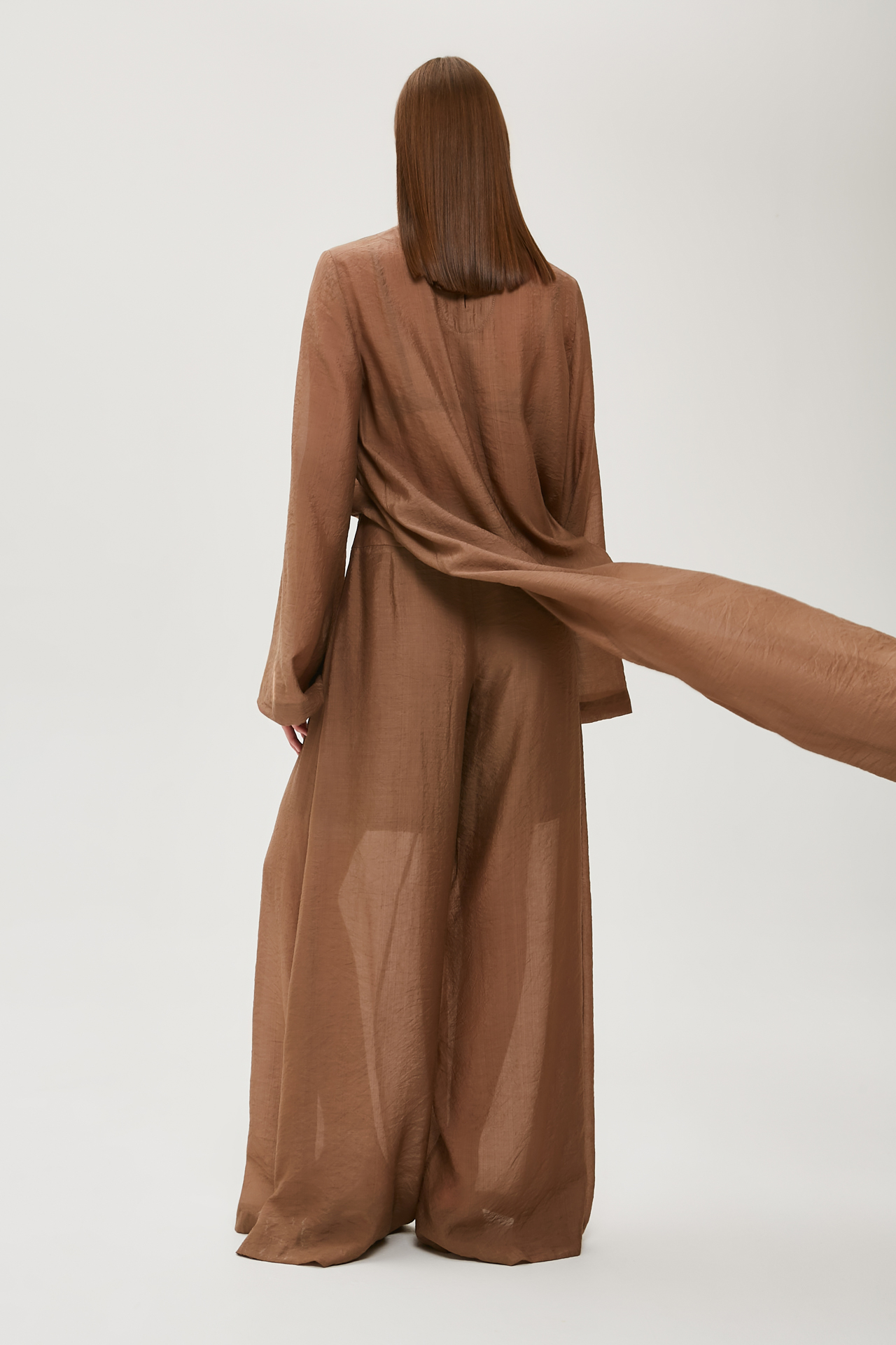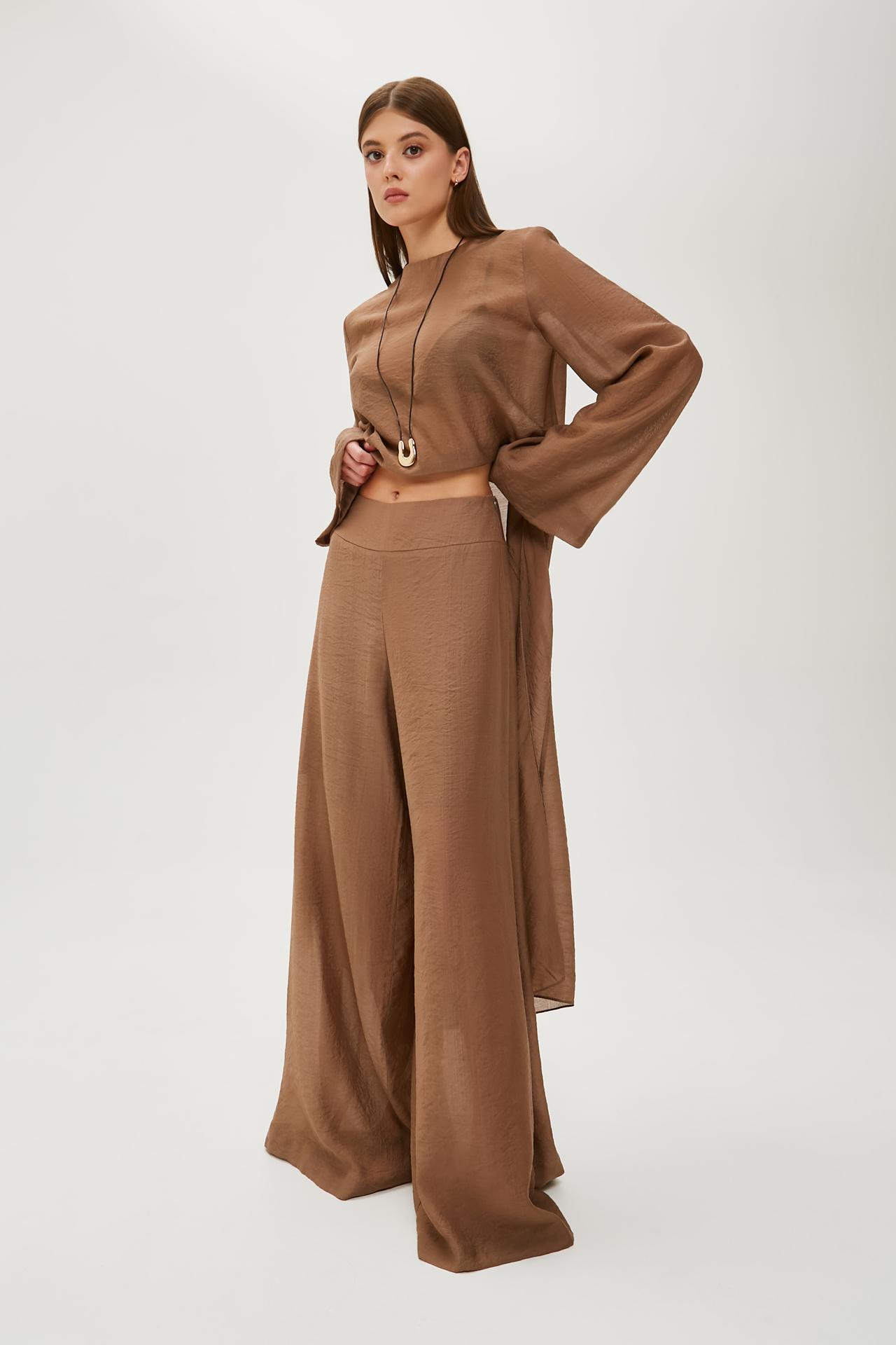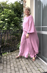 Шила из вуали. К брюкам шила еще и тунику из этого же комплекта! Смотрится очень круто. Костюм всегда прикрывает взгляды, и в нем получаю множество комплиментов💙 Ношу и на пляж, и в городе!
