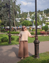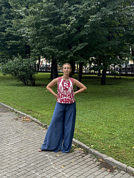 Отличные брюки! Сшила точно по инструкции. Нигде ничего не исправляла в выкройке, только длину укорачивала под рост. Буду шить из другой ткани еще!