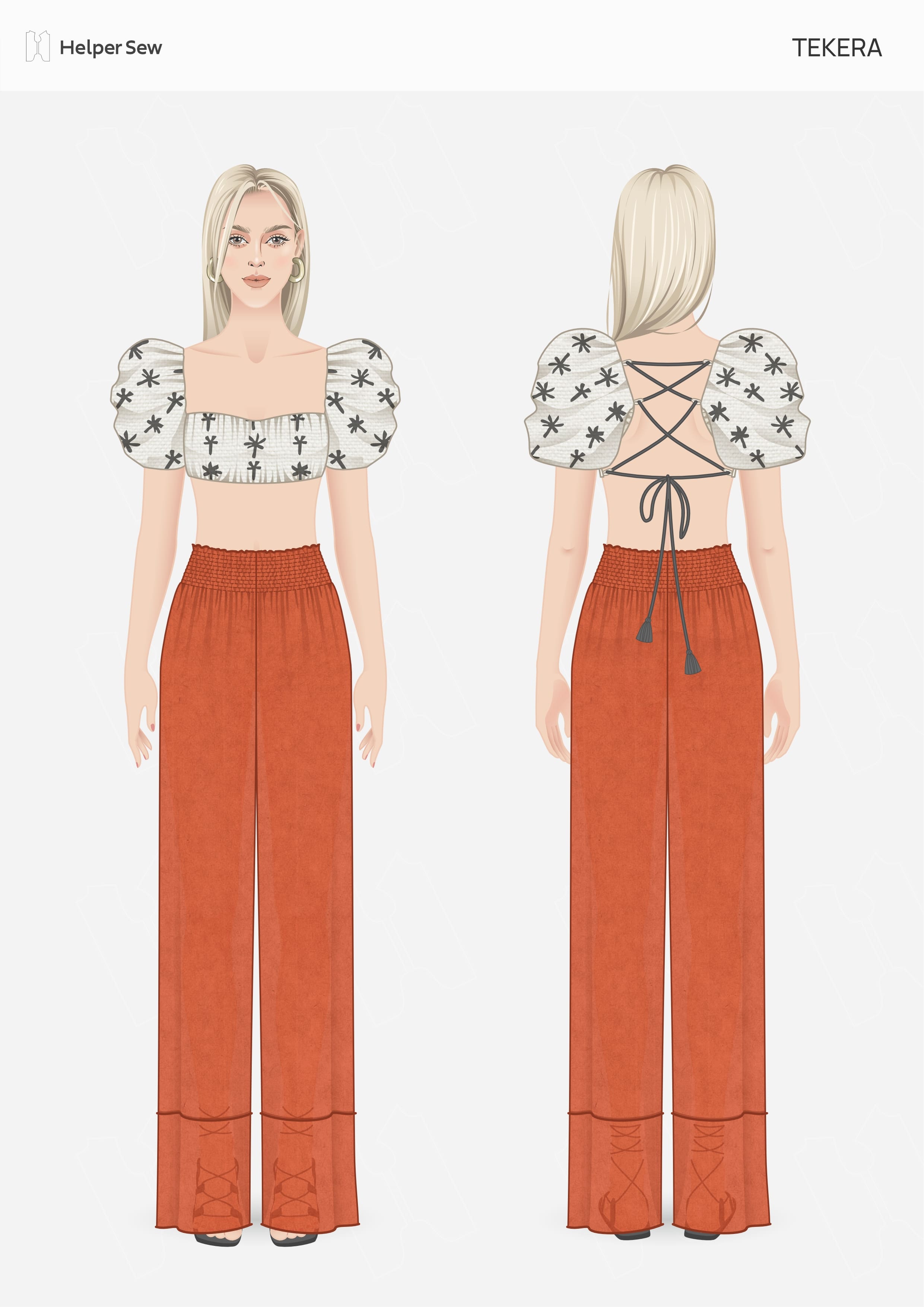 The pattern is very easy to follow, and the fit is great! However, choosing the right fabric can be tricky. I used seersucker, but it turned out to be too sheer. I’d recommend using linen instead—it's lightweight enough for the elastic threads to gather the waist properly, without being see-through.