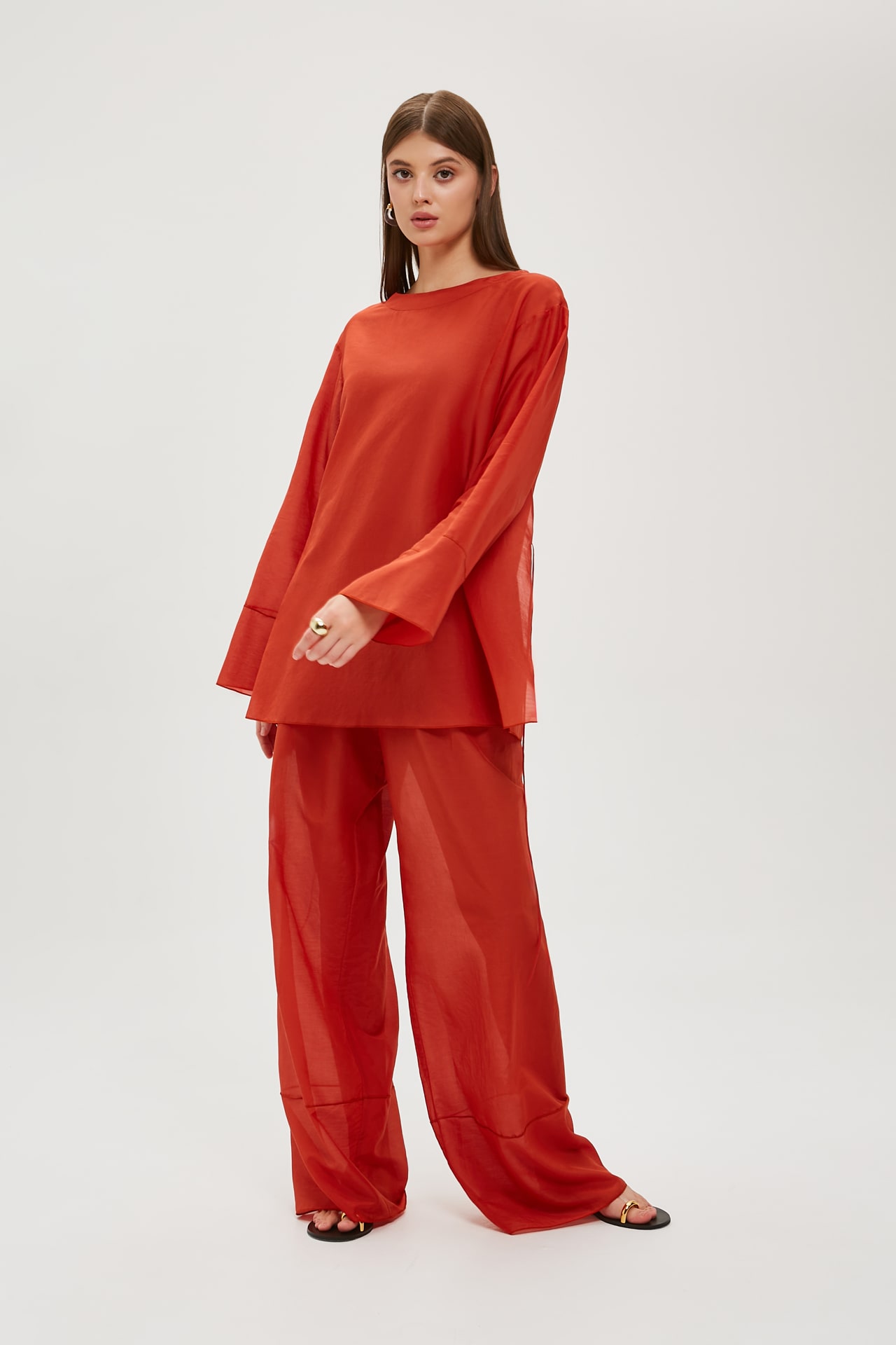 Брюки шьются в целом легко. Немного повозилась с поясом, т. к. не было ранее опыта работы с эластичными нитками, но результат порадовал) Сидят хорошо. Брала свой размер на ОБ 99. Выкройку никак не корректировала, возможно, кому-то покажутся слишком длинные. Единственное, не очень удачную ткань нашла (синтетика), зимой был дефицит летних тканей в магазинах. На тунику и штаны уходит метраж не маленький.