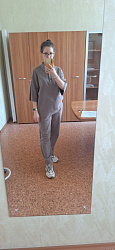 Вот и штаны готовы. В принципе, выкройка не плохая, но на фото видно, что посадка сзади на мне не правильная. Пришлось углублять шов сиденья и выпускать шаговой шов сзади. На мой рост 164 длинна в самый раз. Вместо петель поставила люверсы. Костюм получился хороший.